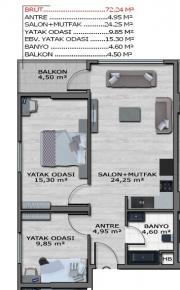 Projemiz, 36 adet 2+1 ve 54 adet 1+1 olmak üzere toplamda 90 daireden oluşmaktadır.